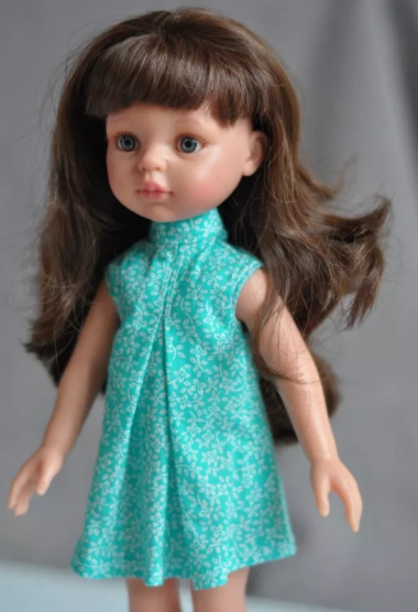 Для таких платьев может использоваться ткань любой фактуры и цвета. Сначала снимают мерку с куклы, определяют ширину и длину выкройки и подготавливают две детали с припуском на швы. Модель платья может быть различной. Передняя деталь платья цельная, задняя — с разрезом. Детали накладывают одна на другую лицевой стороной внутрь и сшивают вверху и по бокам.
